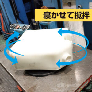 回転台に寝かせて撹拌 2026.01.20 カイゼン事例 改善前 ポリタンクに入っている潤滑剤の撹拌作業。 重さ20キログラムのポリタンクを振り続けるのは、腰に大きな負担となる。 改善後 回転台にポリタンクを寝かせて撹拌することにした。 事例提供:株式会社ニチダイ ※無断転載厳禁:ご利用の際はご連絡ください 効果 腰の負担がグンと減った。 カイゼンの定石 ツール活用 腰痛対策 やりやす化 安全