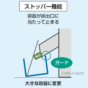 容器が倒れかけても、排出口に引っかかり、倒れなくなった。